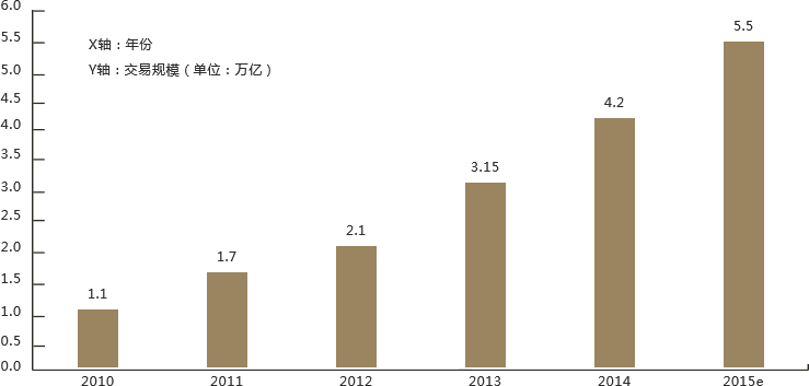 2014年,中国跨境电商交易规模为4.2万亿,同比增长33.3%,而在进出口比例上,从2014年中国跨境电商的进出口结构看,2014年中国跨境电商中出口占比达到85.4%,进口比例14.6%。